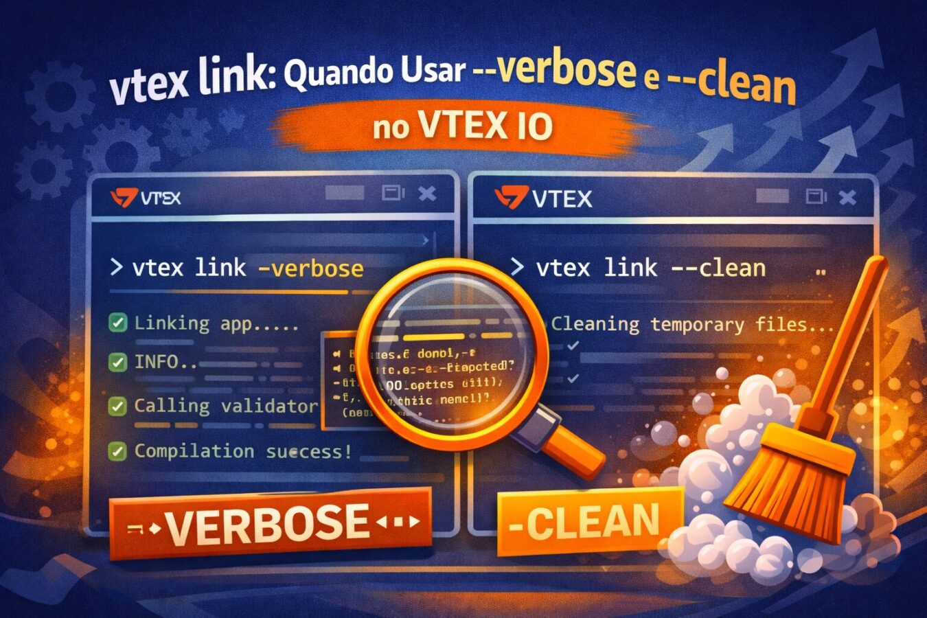 Blog vtex link: quando usar –verbose e –clean no VTEX IO Entenda quando e por que usar –verbose e –clean no vtex link. Veja exemplos práticos para depurar erros e iniciar ambientes limpos no VTEX IO.