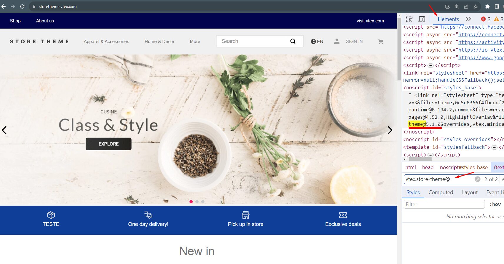 Dessa forma, o próprio HTML exibirá a versão do app de tema diretamente na árvore de elementos da página.